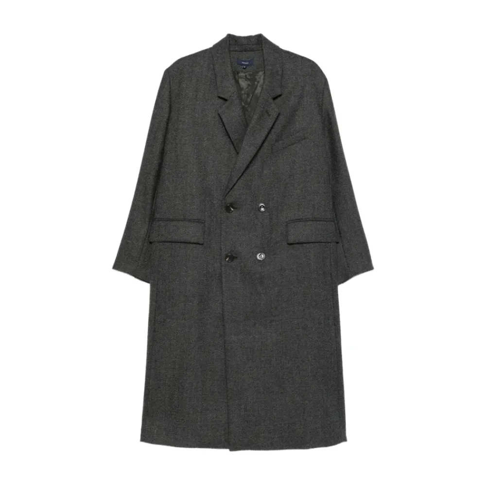 Forhøj din stil med denne SOEUR dobbeltradet frakke i grå. Med lommer, lange ærmer og en reverskrave er denne frakke et must-have for den modebevidste kvinde. Lavet af 100% ren uld med en foring af bomuld og viskose.