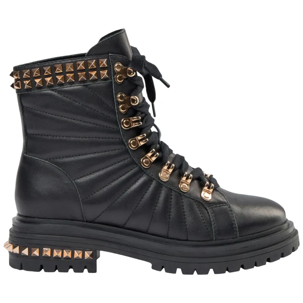 Sofie Schnoor Snøresko*Læderstøvler med gyldne detaljer Sort