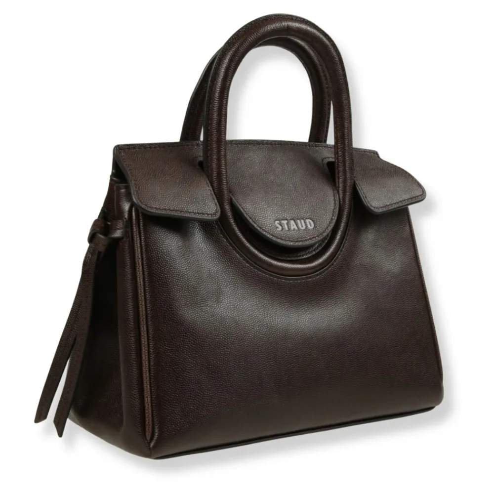 STAUD Maude Skuldertaske kombinerer et karakteristisk dobbelt håndtag med en frontklap med tab-lukning og en aftagelig skulderrem for alsidig bæring. Læderdesignet er velegnet til hverdagsbrug, samtidig med at det holder dine væsentlige ting organiseret. Vigtige egenskaber: Brun | Espresso | Læder | Slidstærkt læder | Dobbelte tophåndtag | Aftagelig justerbar skulderrem | Klaplukning med tab-fastgørelse | Indvendig lynlåslomme | East-west silhuet | Ovale tophåndtag | Knudedetalje på siderne | Logo detalje på frontklap | Mål & pasform: Bredde 23 cm | Højde 18 cm | Dybde 10 cm | One size | Sammensætning & pleje: 100% Koskindslæder | Foring: læder