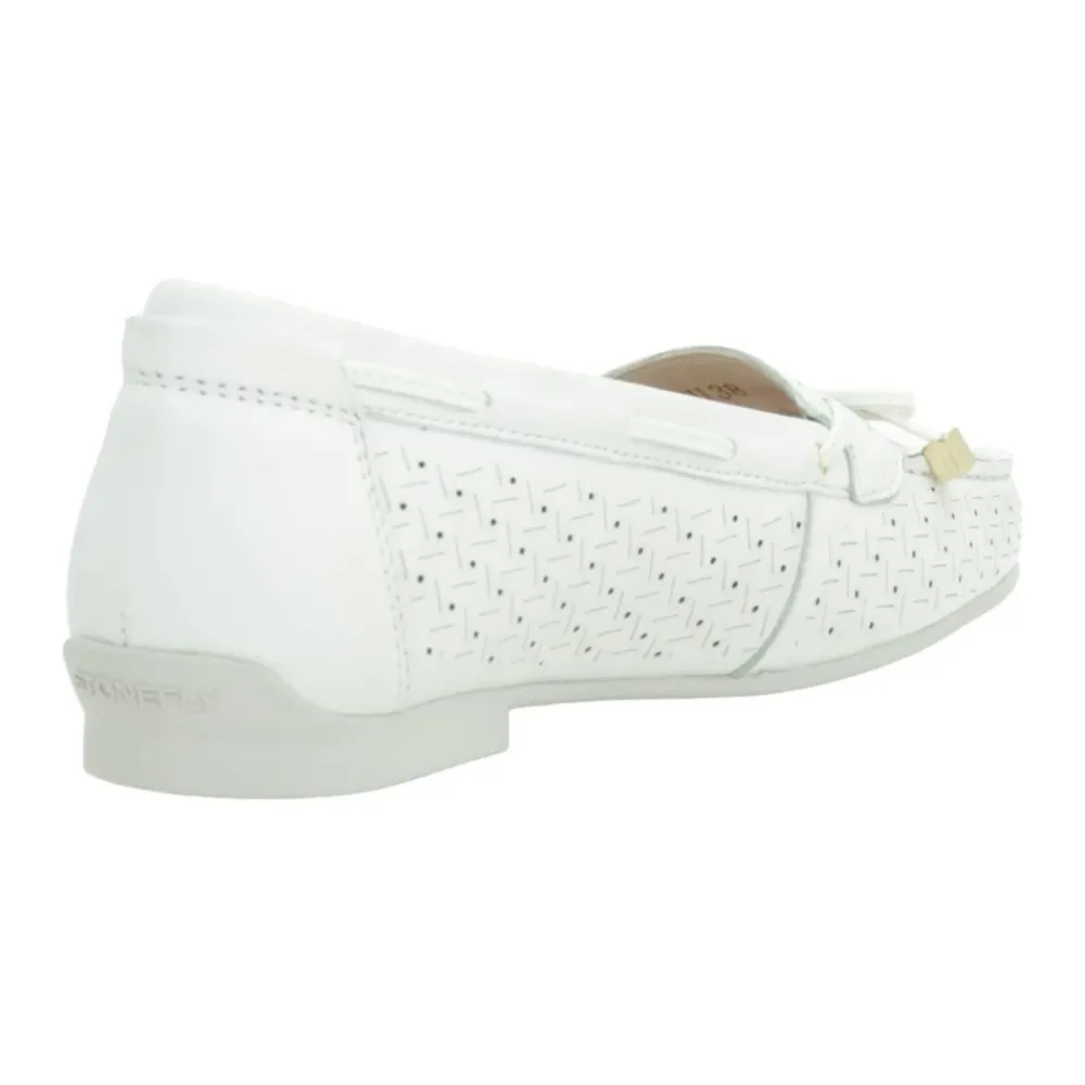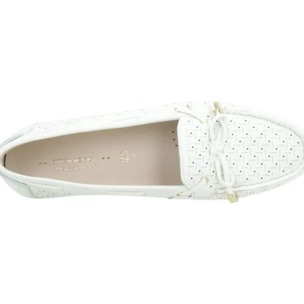 STONEFLY CAPRI III 1 NAPPA LTH er en hvid nappa-læder mokkasin designet til letvægtsbrug hele dagen. Den kombinerer en perforeret overdel med Blusoft-stødabsorbering for komfortable og støttede skridt. Nøgleattributter: Hvid | Nappa læder | Blusoft stødabsorberende polstring | Letvægtskonstruktion | Åndbar perforeret overdel | Gummisål | Perforeret overdel | Dekorativ sløjfe med guldfarvet hardware | Mokkasin silhuet | Dimensioner & pasform: Almindelig pasform | Sammensætning & pleje: Nappa læder (overdel) | Gummi (sål)