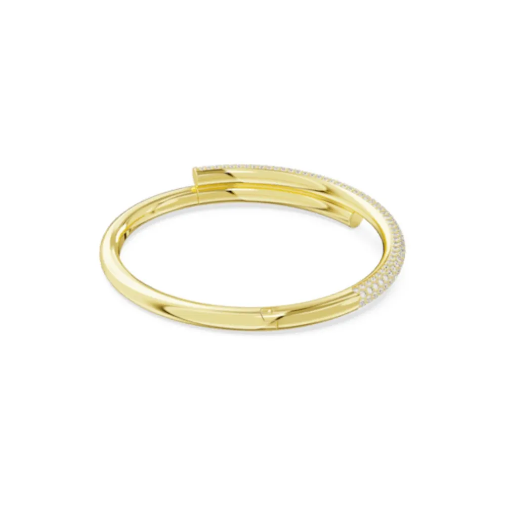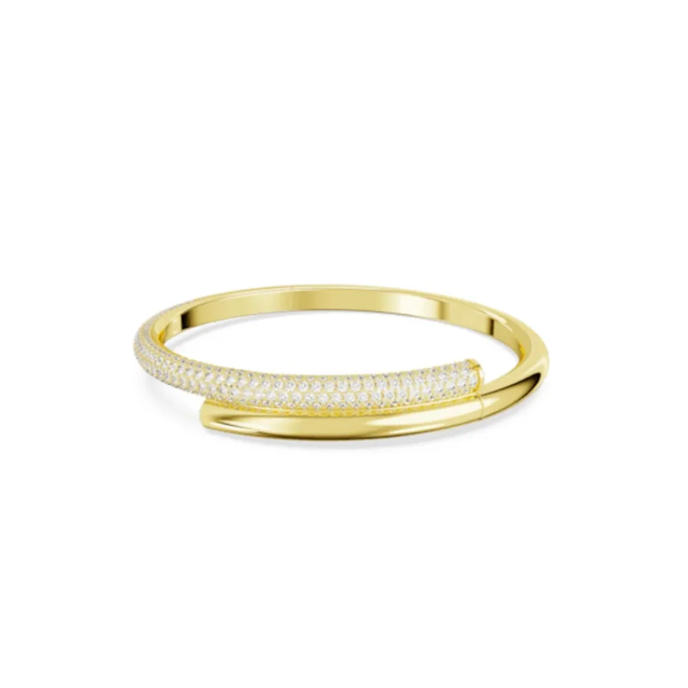 Swarovski armbånd: et guldfarvet metalarmbånd, der kombinerer et poleret look med alsidig brug til hverdagsbrug og særlige lejligheder. Nøgleattributter: Guld | Metal | Guldfinish | Poleret metal | Tidløs armbåndssilhuet | Sammensætning & pleje: Metal