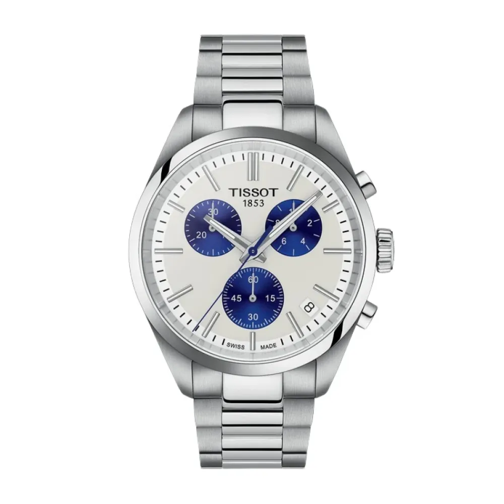 TISSOT PR 100 Chronograph er en klassisk 40 mm kronograf, der kombinerer en hvid urskive med et rustfrit stålarmbånd. Designet til hverdagsbrug og kombinerer præcis schweizisk quartz-tidtagning med robust konstruktion. Nøgleattributter: Hvid | Grå | Stål | Multicolor | Rustfrit stål | Vandtæt til 10 bar (100 m) | Ridsefast safirkrystal | Schweizisk quartz-urværk | Kronograffunktioner (30-minutters og 1/10-sekund tællere, central 60-sekundersviser) | Udskifteligt quick-release armbånd | Sommerfuglelås med trykknapper | Kronograf subdials | Indeks timemarkører | Nåleformede visere | Polerede centerarmbåndsled | Dimensioner & pasform: Urkassediameter: 40,00 mm | Urkassetykkelse: 11.26 mm | Lug bredde: 20,00 mm | Vægt: 135 g | Sammensætning & pleje: 316L rustfrit stål (urkasse) | Rustfrit stålarmbånd | Safirkrystal | Aftørres med en blød klud; undgå kontakt med kemikalier og ekstreme temperaturer. Få batteri og forseglinger serviceret af et autoriseret servicecenter.