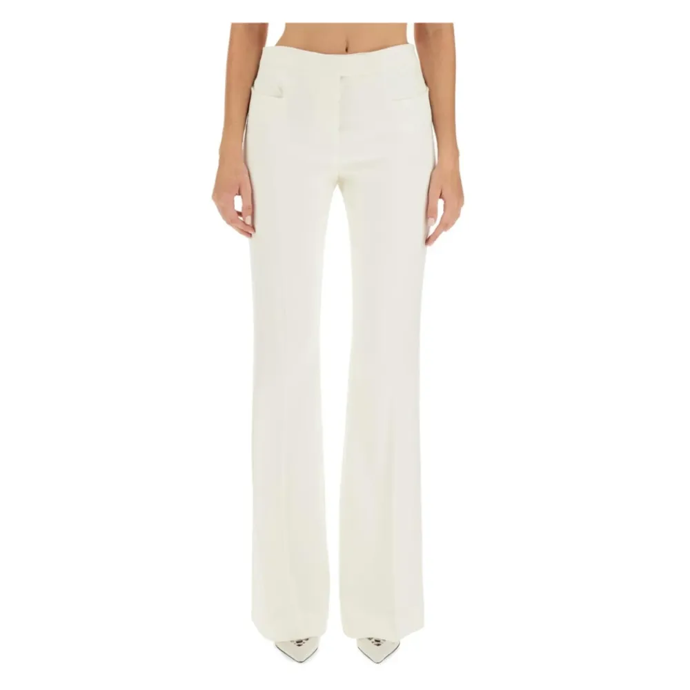 Tom Ford Højtaljede Flared Bukser kombinerer præcis skræddersyning med et dramatisk flared ben for at skabe en poleret, forlængende silhuet, der er ideel til pæne og formelle outfits. Vigtige egenskaber: Hvid | Højtaljet silhuet | Dramatisk flared ben | Subtile lommedetaljer | Skræddersyet konstruktion | Dimensioner og pasform: Højtaljet pasform | Flared ben