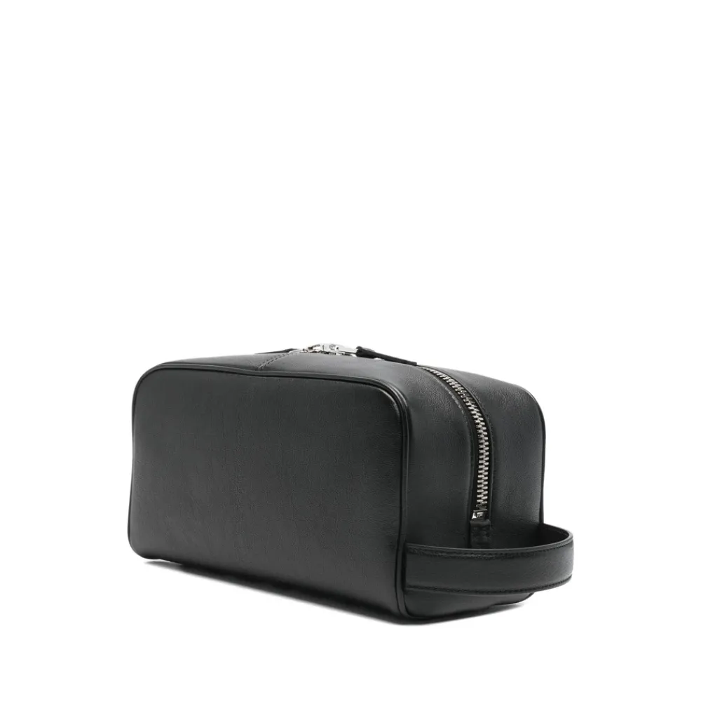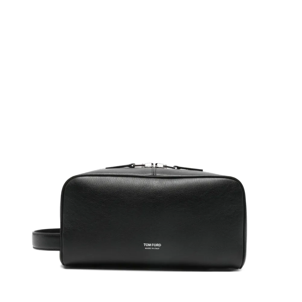 Tom Ford Toilletry Bag er et raffineret rejsetilbehør fra Tom Ford, designet til sikker og kompakt opbevaring. Den fremhæver en ren silhuet med signaturlogo detaljer og en lynlåslukning for nem adgang. Nøgleattributter: Sort | Lynlåslukning | Indvendig lomme til organisering | Logo detalje | Elegant, minimal silhuet
