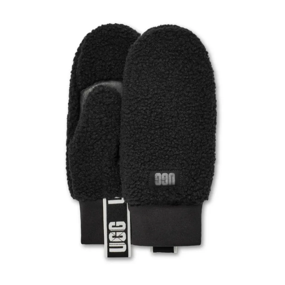 UGG Fluff Mitten With Logo Tape kombinerer blød sherpa-isolering med en forstærket læderhåndflade til hverdagsbrug i koldt vejr. Designet til nemt at tage af og på, og kombinerer fluffy varme med logo-detaljer. Vigtigste egenskaber: Sort | Sherpa | Isoleret faux-fur foring | Varm fleecekonstruktion | Strækbare stormmanchetter | Brandede trækstropper for nem af- og påtagning | Læderhåndflade for greb og forstærkning | Vante silhuet | Fluffy sherpa ydre | Læder logo patch | Logo tape detalje | Dimensioner og pasform: Fås i S/M og L/XL | Sammensætning og pleje: Akryl | Modakryl | Polyester sherpa | Faux fur foring (polyester) | Læder (logo og håndflade) | Pletrens stoffet; professionel læderrens til læderdele.
