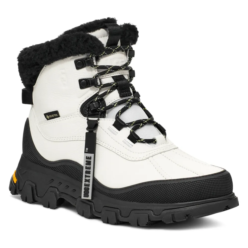 UGG Adirondack Meridian er en vinterstøvle fra UGG, der er klar til al slags vejr og bygget til ekstrem kulde og våde forhold. Den kombinerer en vandtæt læderoverdel og GORE-TEX åndbar membran med en Vibram ICETREK-ydersål med højt greb for pålideligt greb og varme. Nøgleattributter: Hvid | Læder | Vandtæt | GORE-TEX åndbar membran | Vurderet til -32°C | Vibram ICETREK-ydersål med højt greb | Pløs med kiler | Trækfane | Snørelukning | Ankelhøj silhuet | Detalje med ombukkelig skaft | Sammensætning og pleje: Læder | GORE-TEX membran | Uldblanding (UGGplush™) | Gummi (Vibram ICETREK-ydersål).UGGs føles tætte i starten, men foret giver sig med tiden. Vi anbefaler din normale størrelse.