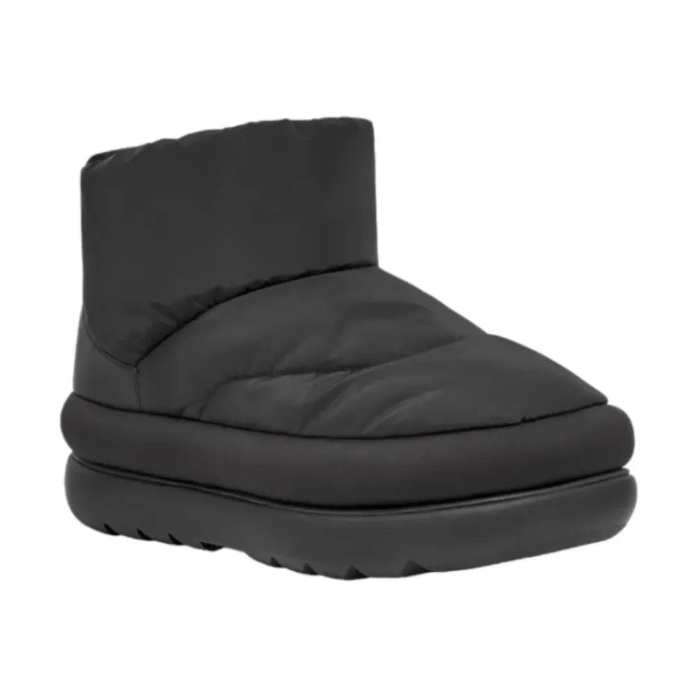 Hold dig varm og stilfuld i vinter med de ultra-behagelige Maxi Mini støvler. Med en vandafvisende tekstiloverdel er disse støvler designet til komfort og holdbarhed under vintereventyr. Produkt detaljer: Sort | Tekstil | Vandafravisende | Bagerste træklukning | Skafthøjde 12,5 cm | Lille logo | Dimensioner og pasform: Normal pasform | Sammensætning og pleje: 80% uld | 20% lyocell | EVA | Gummi | Pletrensning kun.UGGs føles tætte i starten, men foret giver sig med tiden. Vi anbefaler din normale størrelse.