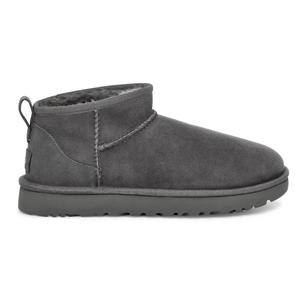 Disse grå Classic Ultra Mini vintersko er en stilfuld løsning til vintervejret, der kombinerer varme og komfort med et elegant design. Produkt detaljer: Grå | Fåreskind | Vandafvisende | Trækhøjder | UGG logo patch | Dimensioner og pasform: Normal pasform | Sammensætning og pleje: 100% fåreskind | 80% uld | 20% Lyocell | Pletrensning kun.UGGs føles tætte i starten, men foret giver sig med tiden. Vi anbefaler din normale størrelse.