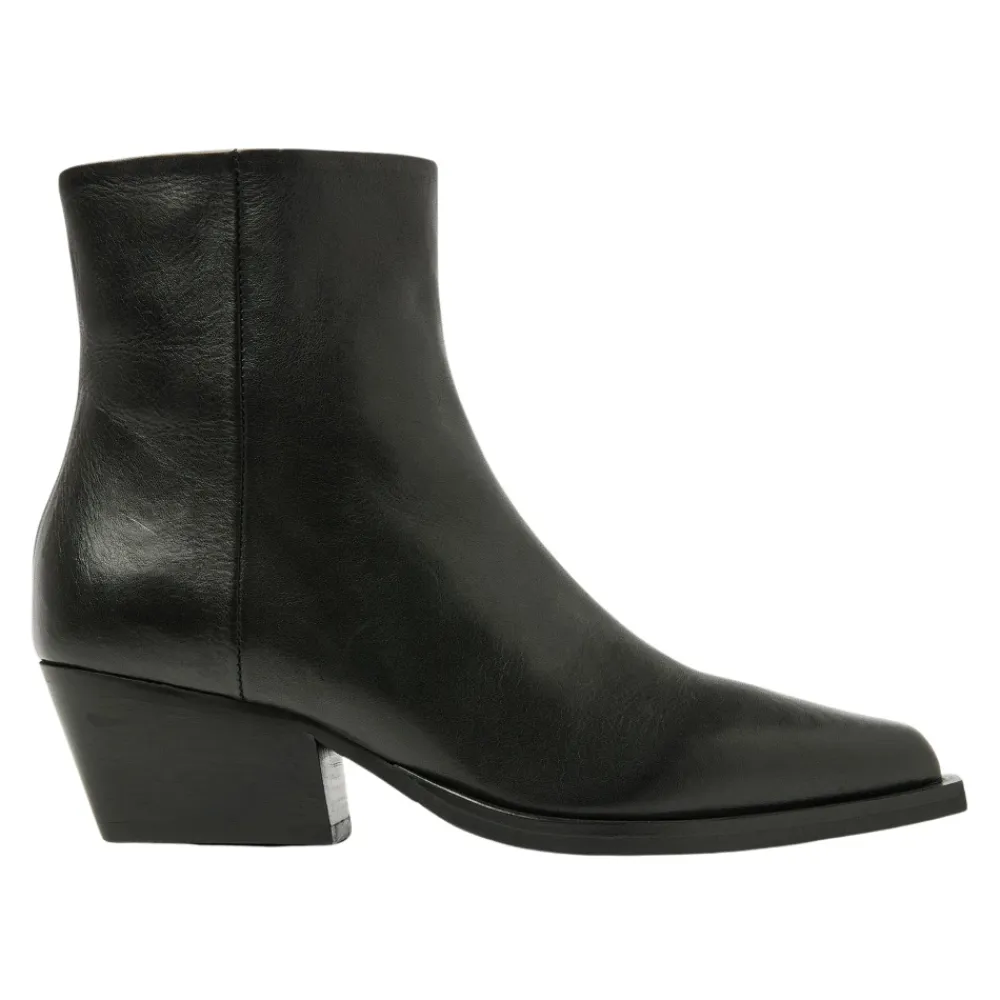 Key features Skrå blokhæl Lige tåkappe Tidløs sort læder Dekorativ søm på siden Funktionel lynlås på indersiden Foring i læder Lavet af læder i høj kvalitet Håndlavet i PortugalDo Cassidy sorte ankelstøvlerLeder du efter en stilfuld, elegant og feminin ankelstøvle? Så behøver du ikke lede længere, Do Cassidy er dit perfekte match! Disse ankelstøvler er lavet af smidigt læder, der giver et hårdt look. Den skrånende blokhæl og den lige tå er et subtilt nik til western-trenden. Kombiner dette med den stilfulde pyntesøm på siden og du har en ankelstøvle, du ikke kan ignorere. Tidløs og trendy!Sådan styler du Do Cassidy ankelstøvlerTakket være sin alsidighed kan du sætte Do Cassidy sammen med hvad som helst. Vores personlige favorit? Style ankelstøvlerne med et farvestrålende jumpsuit eller bukser. Denne kontrast vil få dine ankelstøvler til at skille sig ud. Garanteret succes! Størrelse Skaftets bredde* Skaftets højde 36 25,7 cm 12,7 cm 37 26 cm 13 cm 38 26,3 cm 13,3 cm 39 26,6 cm 13,6 cm 40 26,9 cm 13,9 cm 41 27,2 cm 14,2 cm 42 27,5 cm 14,5 cm *Målt på toppen af skaftet.