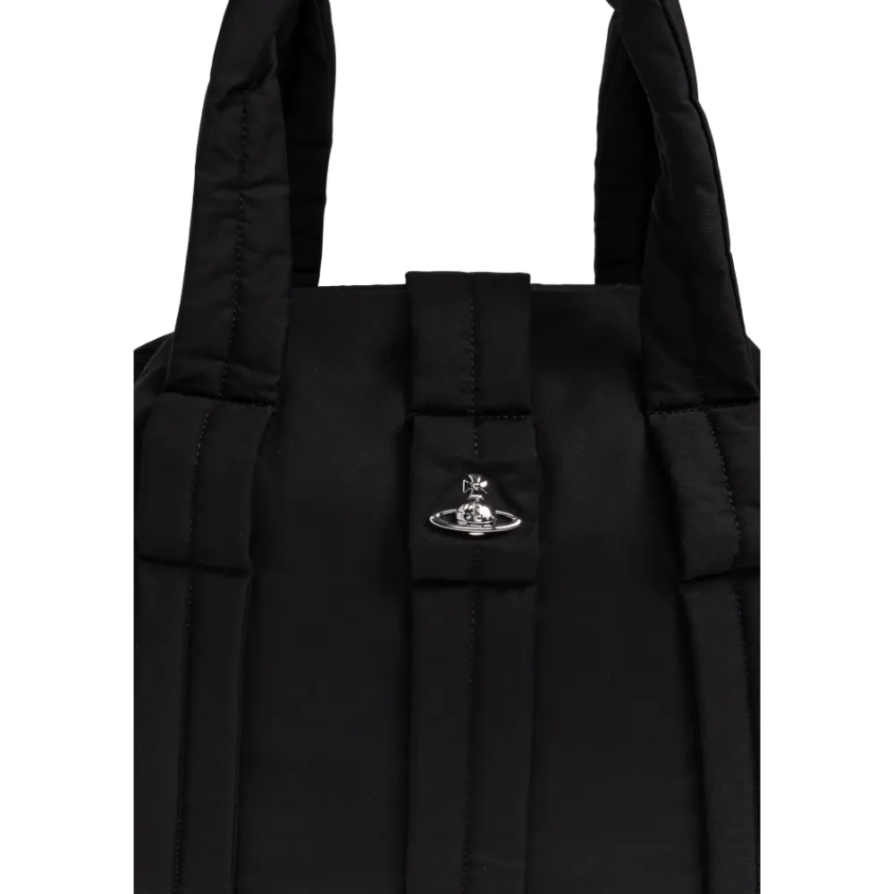 Vivienne Westwood Sidney Håndtaske kombinerer en sporty-urban mat finish med en blødt afrundet silhuet til hverdagsbrug i byen og weekendture. Dens brede base og rummelige indre skaber balance mellem elegante linjer og praktisk kapacitet. Vigtige egenskaber: Sort | Polyester | Slidstærkt materiale | Robuste, komfortable håndtag | Bred base for stabilitet | Rummeligt hovedrum | Blødt afrundet silhuet | Mat tekstur | Minimalistisk design med centralt sølvfarvet Vivienne Westwood emblem | Kontrasterende rødt indvendigt for | Dimensioner & pasform: Højde: 33,5 cm | Bredde på det bredeste punkt: 52 cm | Bundbredde: 17 cm | Rummeligt indre | Struktureret base for stabilitet | Sammensætning & pleje: Polyester