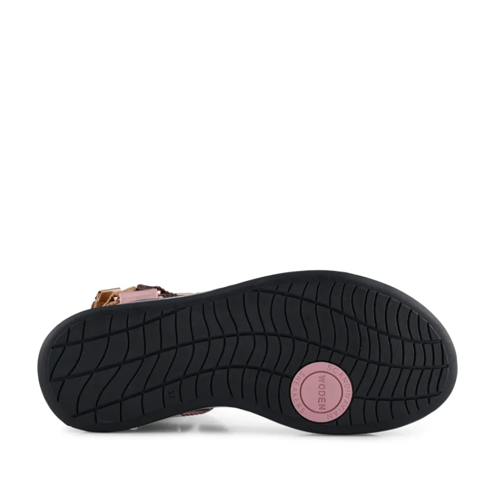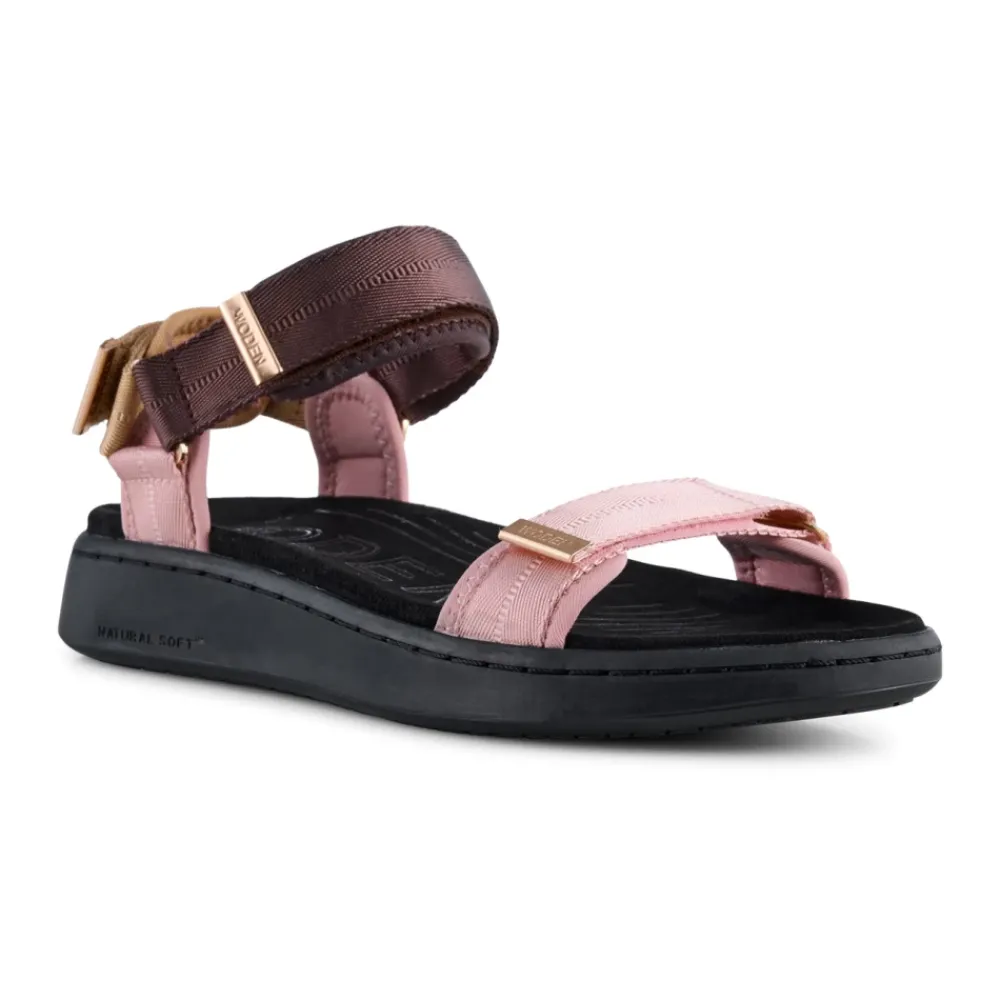 Opgrader din sommerstil med disse Woden Zephyr Multi sandaler til kvinder. Med en smuk farvekombination af pink, brun og gylden beige er disse komfortable flade sandaler perfekte til hele dagen. De justerbare velcrostropper sikrer en god pasform, mens den bløde PU-skumindersål giver letvægts og stødabsorberende polstring. Den naturligt bløde mellemsål og fleksible gummisål tilbyder støtte og komfort til dine fødder. Materiale: Tekstil, gummi. Style no.: WL926_517.