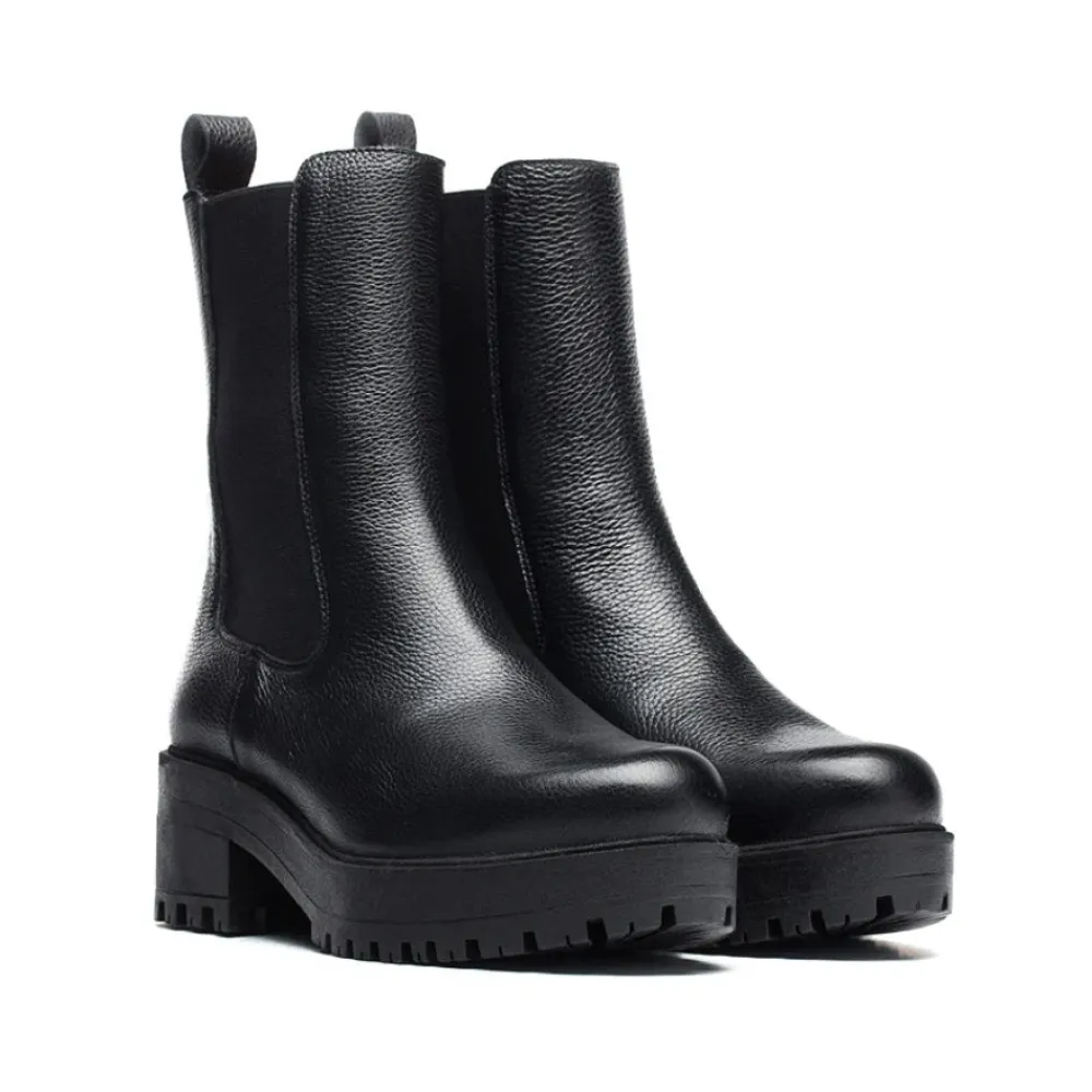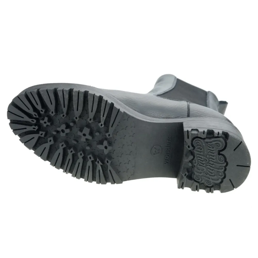 Træd ud i stil med disse Wonders Chelsea-støvler til kvinder. Fremstillet af sort læder med en tekstureret overflade, har disse ankelstøvler brede elastiske sider, en praktisk træklap og lynlåslukning. Den tykke spor sål giver fremragende trækkraft, mens den fleksible sål sikrer maksimal komfort. Oplev Wonders enestående kvalitet med disse bikerstøvler.