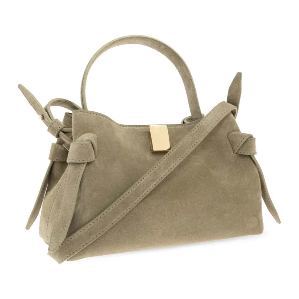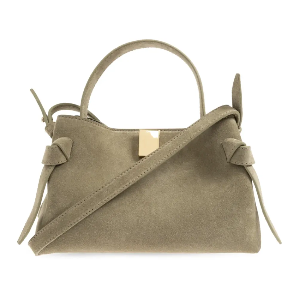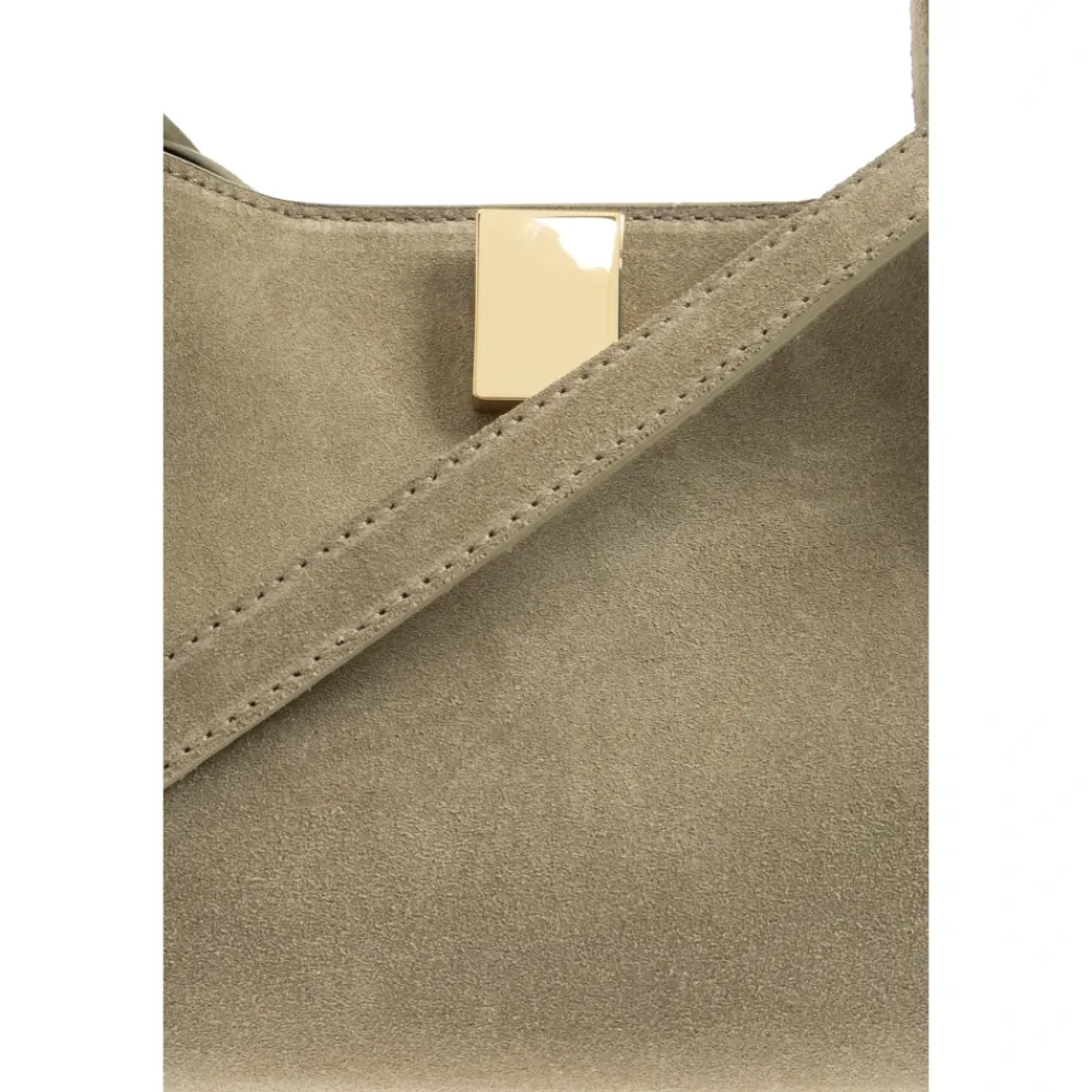 Yuzefi Gyoza Mini Håndtaske kombinerer en kompakt, afrundet silhuet med en markant, guldfarvet firkantlås. Den er fremstillet i blødt ruskind med alsidige bæremuligheder, og den fungerer godt til brug fra dag til aften. Vigtigste egenskaber: Grøn | Ruskindslæder | Slidstærk inderforing | Justerbar skulderrem | Aftagelig skulderrem | Kort tophåndtag | Magnetisk lukning | Afrundet silhuet | Guldfarvet firkantlås i metal | Dekorative syninger og sideknuder | Mål og pasform: Højde: 14,5 cm | Bredde: 23 cm | Sammensætning og pleje: 100% bovint læder | Foring: 50% polyamid, 50% polyuretan | Opbevares på et køligt, tørt sted, væk fra direkte sollys og varmekilder.
