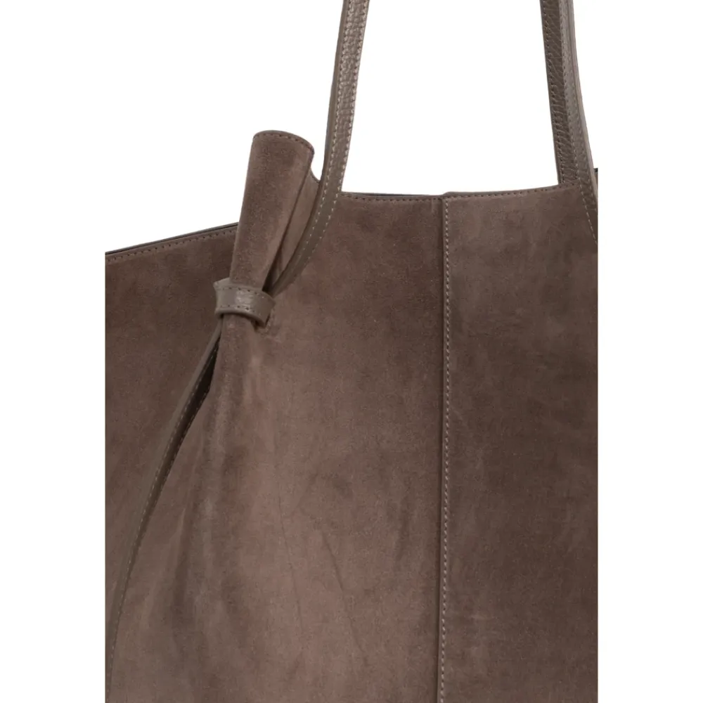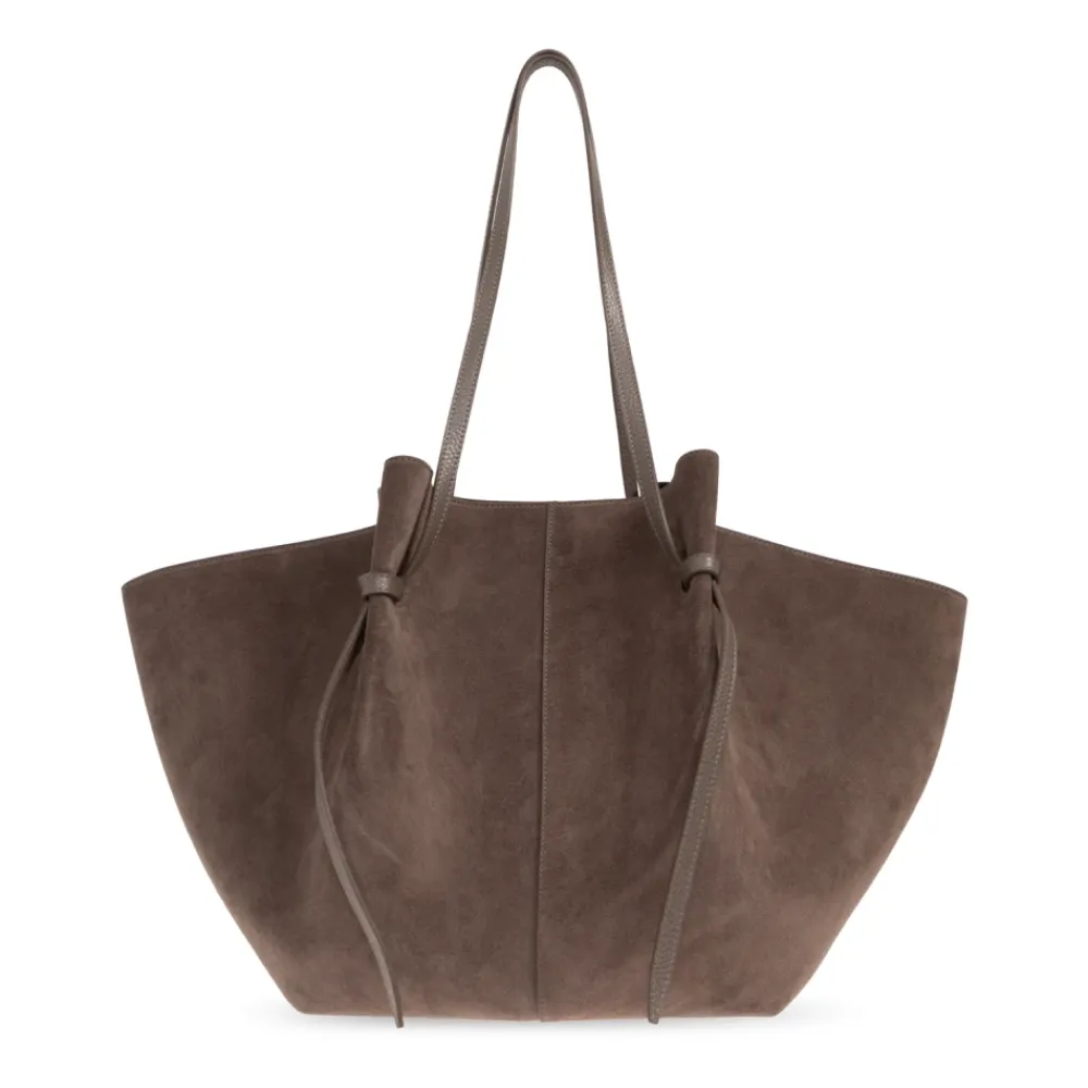 Yuzefis XL Mochi Shopper Bag er en rummelig ruskindstote, der kombinerer en blødt draperende silhuet med en bred base til hverdagsbrug og rejser. Dens minimalistiske finish og knyttede håndtagsdetalje giver tasken et raffineret, håndlavet look. Vigtigste egenskaber: Brun | Ruskind | Magnetisk lukning | To lange skulderhanke | Justerbar rem via signaturknude | Ekstraordinært rummeligt interiør | Kan rumme daglige fornødenheder og en bærbar computer op til 14″ | Bred base og let udstrakte sider | Central lodret søm | Symmetriske syninger | Lange hanke afsluttet med dekorativ knude | Minimalistisk ydre uden synlige logoer | Dimensioner og pasform: Topbredde: 56 cm | Bundbredde: 13 cm | Bundlængde: 30 cm | Højde uden hank: 35 cm | One size | Rummelig, blødt draperende silhuet med et afslappet udtryk | Passer til en bærbar computer op til 14″ | Sammensætning og pleje: Ydre: 100% kalveruskind | Foring: 50% polyamid, 50% polyurethan | Opbevares i en støvpose; undgå kontakt med vand, olier og parfumer. Dup overskydende fugt med en blød klud, og lad den lufttørre. Rengør forsigtigt med en ruskind børste eller ruskind viskelæder, og følg plejeetikettens anvisninger.
